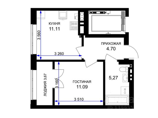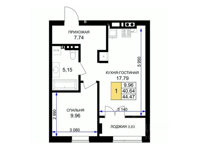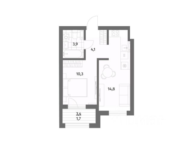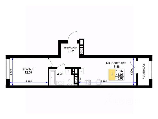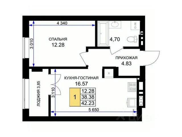Площадь квартиры составляет 42,21 кв.м., кухня-гостиная 16,58 кв.м., комната 12,28 кв.м., лоджия 3,82 кв.м. Квартира не угловая, установлены стеклопакеты, сан\узел совместный, в квартире будет выполнен качественный "серый ключ", что Вам дает возможность реализовать все Ваши идеи. Квартира подойдет как для молодых людей, так и оптимальный вариант для инвестиции в недвижимость.