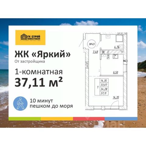 КВАРТИРА У МОРЯ В ЗЕЛЕНОГРАДСКЕ 10 минут пешком до пляжа! Семейная ипотека 5% Рассрочка от застройщика 0% Подарок: умный дом от Сбера Продается квартира комфорт-класса в новом малоэтажном ЖК "Яркий" у Балтийского моря, г. Зеленоградск. Прямая продажа от застройщика. Тихая локация в развивающемся районе - вдали от городского шума и рядом с побережьем. 1-комн. квартира 4 этаж О ЖИЛОМ КОМПЛЕКСЕ 4-этажные дома с лифтами Удобные планировки Отделка "серый ключ" - коммуникации спрятаны, стены оштукатурены, полы залиты Металлические двери с тепло- и шумоизоляцией Автономное газовое отопление Детские площадки, зоны отдыха, озеленение Доступная среда Парковочные места для жителей и гостей комплекса Закрытая территория со шлагбаумами ЛОКАЦИЯ ЖК расположен в посёлке Малиновка - это: тишина чистый, комфортный пляж 10 минут до Куршской косы на автомобиле 8 минут до центра Зеленоградска 35 минут до Калининграда магазины, кафе, транспорт - рядом О ЗАСТРОЙЩИКЕ "СТРОЙИНВЕСТИЦИЯ" Строим с 2014 года в Калининграде и области. Сопровождаем клиента на всех этапах - от подбора квартиры до регистрации сделки. Работаем только с эскроу-счетами - ваши средства защищены! Возможна дистанционная покупка и онлайн-сделка. ЖК "Яркий" - комфортная жизнь у моря и выгодная инвестиция. Подходит для проживания, отдыха и сдачи в аренду. Позвоните или напишите нам - расскажем о планировках, ипотеке и актуальных предложениях, запишем на просмотр или онлайн-показ. Продам 1-комнатную квартиру первичка в Зеленоградском районе Калининградской области.