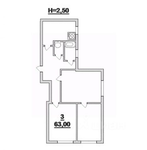 Параметры: площадь квартиры 65 м2 (с учетом лоджии), кухня 13 м2 с эркером, комнаты изолированные 18,5 + 15 м2 (окна на солнечные стороны), закрытая лоджия с выходом из спальни, санузел совмещен.
