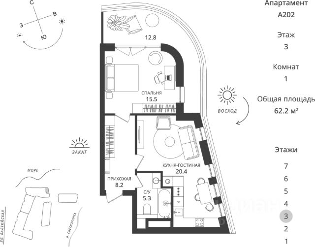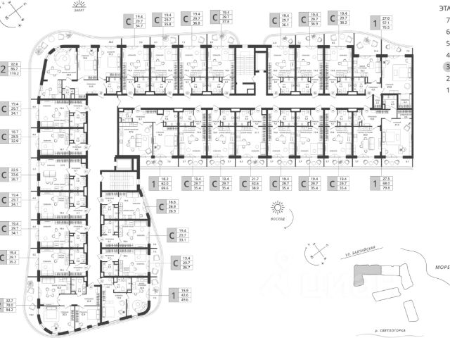 Представляем вам уникальный проект в Светлогорске жилой комплекс Морская нота. Это место, где природа и комфорт сливаются в единую симфонию, создавая идеальные условия для жизни и отдыха. Архитектура и удобства Комплекс состоит из 16 пятиэтажных домов, каждый из которых оснащен лифтом для вашего удобства. Мы позаботились о создании безбарьерной среды, чтобы каждый житель чувствовал себя комфортно. В домах предусмотрено автономное отопление, что гарантирует тепло и уют в любое время года. На первом этаже коммерческие помещения под магазины и кафе. Разнообразие планировок Во втором доме ЖК Морская нота представлены уютные студии, одна- и двух комнатные квартиры различных планировок. Просторные помещения с открытыми балконами и остекленными лоджиями позволяют наслаждаться свежим морским воздухом и потрясающими видами на окрестности. На первом этаже дома расположены коммерческие помещения. Идеальное расположение Комплекс расположен в непосредственной близости к морю, что позволяет вам ежедневно наслаждаться музыкой волн и свежестью бриза. Отличная транспортная доступность обеспечивает легкий доступ ко всем необходимым объектам инфраструктуры города Светлогорска и города Калининграда. Безопасность и комфорт Ваша безопасность наш приоритет. Комплекс оборудован современными системами видеонаблюдения, чтобы вы могли жить спокойно и уверенно. Двор без машин обеспечивает безопасность ваших детей и спокойствие для всей семьи. Квартира от застройщика Покупка квартиры напрямую от застройщика это гарантия качества и надежности. Мы предлагаем выгодные условия приобретения жилья в новостройках. При покупке квартир в данном ЖК вы можете использовать любые сертификаты и любые ипотечные программы (семейная, IT). Так же вы можете воспользоваться беспроцентной рассрочкой от застройщика. Откройте для себя жизнь у моря с жилым комплексом Морская нота здесь каждая деталь продумана для вашего комфорта! *условия ипотеки и рассрочки уточняйте у менеджера. Продам 1-комнатную квартиру с балконом в Светлогорске.