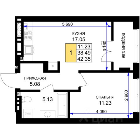 Квартира без обременений, один взрослый собственник, без зарегистрированных лиц.