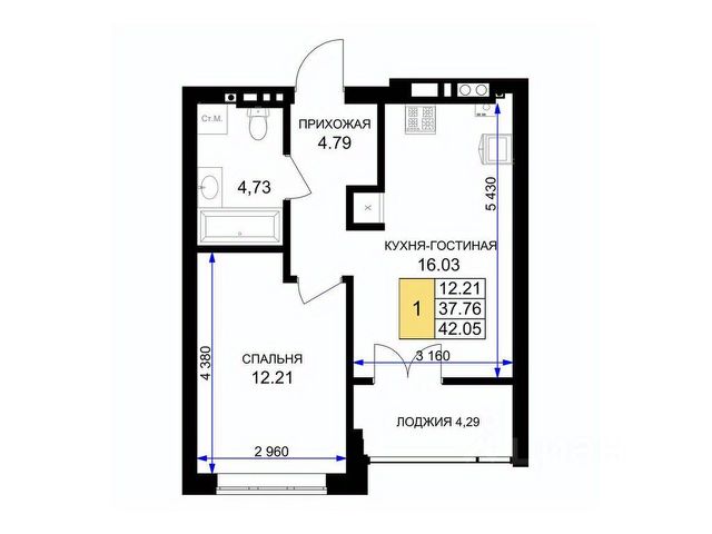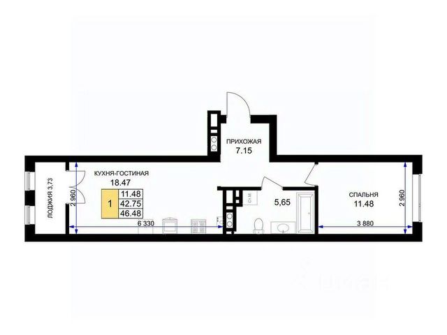 Однокомнатная квартира - это гармоничное сочетание современной планировки, естественного света и продуманной функциональности. Пространство легко зонируется на спальную и гостиную зоны, а просторная кухня с возможностью размещения полноценной обеденной группы становится центром домашнего уюта и встреч с близкими. Лоджия, выходящая из жилой зоны, расширяет полезную площадь: здесь можно организовать рабочий уголок, мини-оранжерею или уютное место для отдыха с чашкой кофе утром.