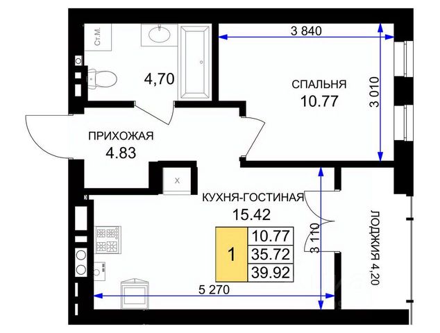 Общая площадь квартиры 72,7 м2.