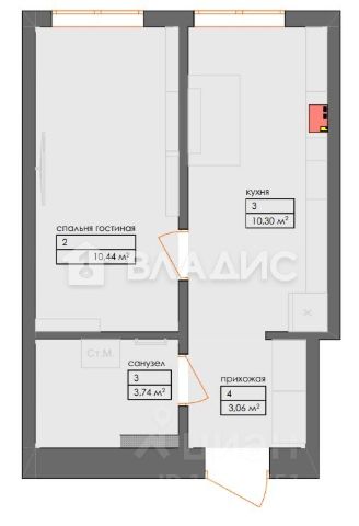 Однокомнатная квартира на третьем этаже шестиэтажного дома 2023 года постройки по улице Гептнера, 11.