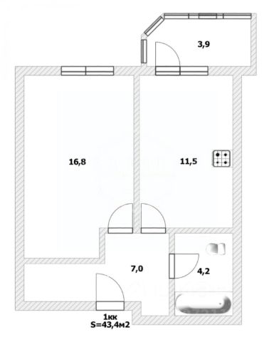 Жилая площадь 22 кв. м.