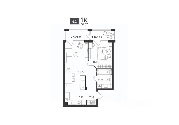 ПРОДАЖА КВАРТИРЫ ОТ ЗАСТРОЙЩИКА! Предлагается шикарная 1-комнатная квартира площадью 48,84/45,33 кв.м, расположенная на 3-ем этаже 7-ми этажного жилого комплекса бизнес-класса "Гармония". Удачное планировочное решение позволяет организовать комфортное пространство из видовой спальни и просторной кухни площадью 10,85 кв.м. Спальная зона деликатно отделена от гостевой. Окна квартиры выходят на западную сторону света (лесной массив и детскую площадку). О квартире: Кухня площадью 10,85 кв.м. Спальня площадью 14,04 кв.м. Балкон Гардеробная Совмещенный санузел Потолок 2,80 метра В самом сердце соснового леса, одного из крупнейших лесных массивов Светлогорска, строится новый жилой комплекс бизнес-класса - ЖК Гармония. ЖК Гармония - это жилой комплекс, состоящий из 3 секций высотой до 7 этажей, с которых будут открываться панорамные виды на лесной массив. В доме предусмотрены сквозные подъезды, соединяющие дворовое пространство и территорию вокруг. В доме также будут располагаться коммерческие помещения. Плюсы: Архитектурное решение в Скандинавском стиле: прямые и чёткие линии, простые формы; натуральные материалы и природные цвета; экологичный дизайн; отсутствие непрактичных декоративных элементов; использование естественного света; сквозные подъезды; кладовые; спортивная и детская площадки с антитравматическим покрытием, велопарковка; 43 вида планировочных решений; лоджия и балкон в каждой квартире, панорамное остекление; скатная крыша, фальцевая кровля, красный керамический блок. Система "умный дом": умные квартирные счётчики, видеонаблюдение территории возле дома, парковка, лифт, видеодомофон. Местоположение и транспортная доступность: ЖК Гармония будет возведён в районе 2,4 км от моря и центра города Светлогорска. Для автомобилистов есть удобные выезды как в центр города, так и на Большую окружную в сторону Калининграда, Зеленоградска, Пионерского, аэропорта. Комплекс расположится прямо у озера Майское в окружении Светлогорского леса. Инфраструктура: На территории ЖК Гармония создаются благоустроенные дворы без доступа автомобилей, а для автомобилистов вместительный подземный паркинг на 36 машиномест. Вокруг будущего комплекса уже сложилась богатая инфраструктура района со школой, детскими садами, детской поликлиникой, детскими лагерями отдыха, физкультурно-оздоровительный комплекс с бассейном, ледовым катком, а также объектами ритейла. Варианты оплаты: Ипотека с Господдержкой, семейная ипотека, военная ипотека, рассрочка от застройщика, материнский капитал, Trade-in, онлайн сделка.
