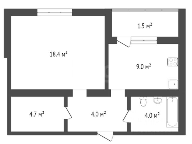 Общая площадь квартиры 40,1 кв. м.