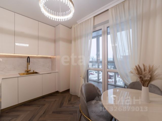 большая кухня гостиная 19,4 м.кв. с панорамным остеклением и выходом на комфортную лоджию. Это место где встречают гостей, с дополнительным спальным местом.,