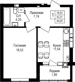 • ✓ Студии, 1-3-комнатные от 44 м² до 44 м² м²