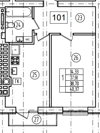 Продаётся 1-комнатная квартира в строящемся доме (Дом 2), срок сдачи: IV-кв. 2026, общей площадью 38.34 кв.м., на 1 этаже. Жилой комплекс "Танго" от застройщика "ДомАрт" расположен в г. Калининград, по ул. Каблукова.