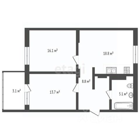 квартира - полумансарда с индивидуальной планировкой на третьем этаже площадью 59.5 м2: