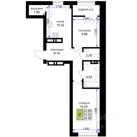 Предлагается к продаже просторная 2-комнатная квартира общей площадью 59, 5 м² по адресу ул. Строительная, 10А на 6 этаже 10-этажного дома.
