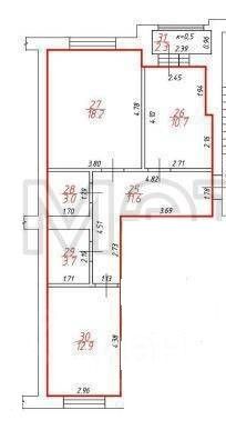 комнаты: 21.9 и 13.7кв.м.,