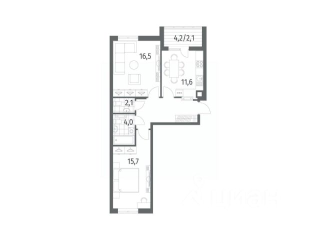 совмещённый санузел 4.6 кв. м.