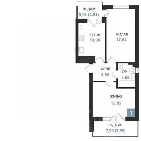 квартира - полумансарда с индивидуальной планировкой на третьем этаже площадью 59.5 м2: