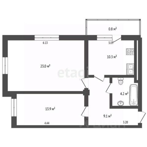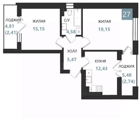 Жилая площадь 31.7 кв.м, кухня 22.4 кв.м.