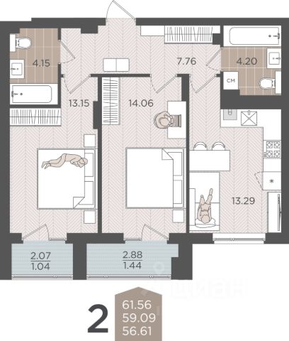Продаётся 2-комнатная квартира в сданном доме (Старшины Дадаева, 55к2 (Дом 2 3 этап)), срок сдачи: III-кв. 2025, общей площадью 58.33 кв.м., на 6 этаже. Квартиры от надежного застройщика "КалининградСтройИнвест" с опытом более 29 лет на строительном рынке! Этапы строительства ЖК "История": 1 дом I этап 2 дом II, III, IX этап Расположение: Жилой квартал из двух девятиэтажных домов располагается в Ленинградском районе Калининграда, на ул. Дадаева. Комплекс находится в районе с развитой инфраструктурой. Удобный выезд в сторону морского побережья по ул. Александра Невского. До центра города 10 минут на автомобиле. В Шаговой доступности располагаются: - ТЦ "Виктория" - Школа 58, 33 - Детский сад 125, 23 (ясли), 123, 11 - Нахимовское училище - Академия народного хозяйства (РАНХиГС) - Калининградский морской проектный институт (КМПИ) - Фитнес-клубы (4 шт ) - Частная стоматология и поликлиника Эдкар, центр красоты и здоровья. А так же рестораны, парикмахерские, кофейни, кондитерские. Особенности квартала: Жилой квартал выполнен в классическом архитектурном стиле с адаптацией под современные тенденции в области строительства. Фасад домов выполнен в светлых тонах, на последних этажах размешены французские балконы, на которых очень уютно будут смотреться цветы и любые живые растения. Благоустройство прилегающей территории и внутридворового пространства будет выполнено по архитектурному проекту с учетом современных материалов и использования качественных малых архитектурных форм. Сам комплекс находится в окружении малоэтажной застройки и имеет свой подземный паркинг, что создает дополнительный комфорт. Преимущества квартала: - отличное расположение - вьезд/выезд на ул. Артиллерийскую и ул.Дадаева - в 10 минутах пешком от набережной озера "Верхнее" - подземный паркинг и кладовые - отделка подъездов по индивидуальному дизайн-проекту - безбарьерный вход в подъезд (входы с уровня земли) - панорамное остекление в пол верхних этажей - современные бесшумные скоростные лифты с возможностью спуститься в кладовую или паркинг не выходя на улицу - умные домофоны - видеонаблюдение на всей территории комплекса - места стоянки колясок и велосипедов - энергоэффективное наружное освещение жилого квартала - большое количество парковочных мест - охрана на территории - огражденная территория внутреннего двора - двор без машин - на первом этаже дома 1 будут располагаться коммерческие помещения (Студия для детей и взрослых, небольшой частный детский сад, кофейня) - разнообразные продуманные планировки : студии площадью от 25 м2, однокомнатные от 36 м2, двухкомнатные от 60м2, трехкомнатные от 70м2. Купить квартиру можно с помощью рассрочки, ипотеки, а также с использованием средств материнского капитала. + Субсидированная ипотека (IT-ипотека и семейная ипотека) + Материнский капитал + Военная ипотека Звоните, чтобы узнать подробнее! Продам 2-комнатную квартиру 60 м2 (квадратных метров) в Калининграде.
