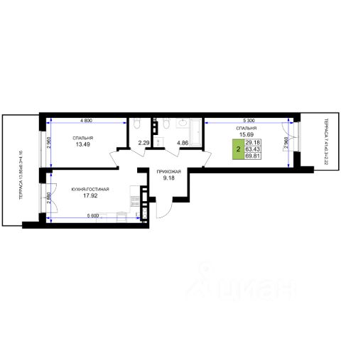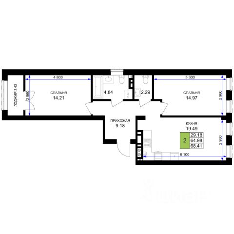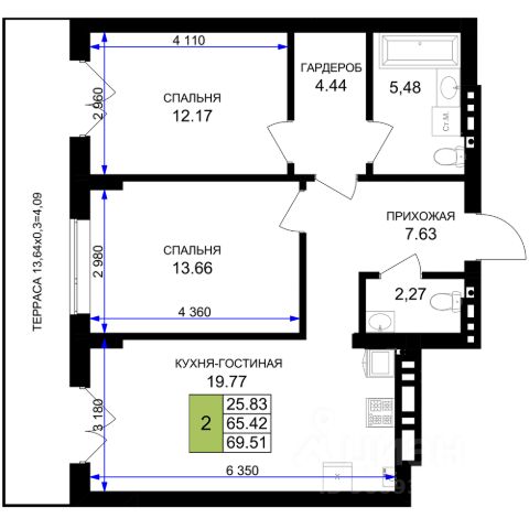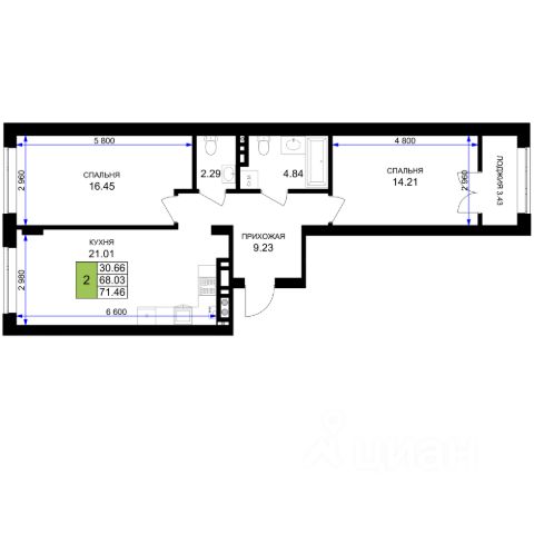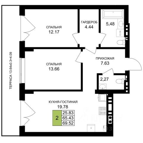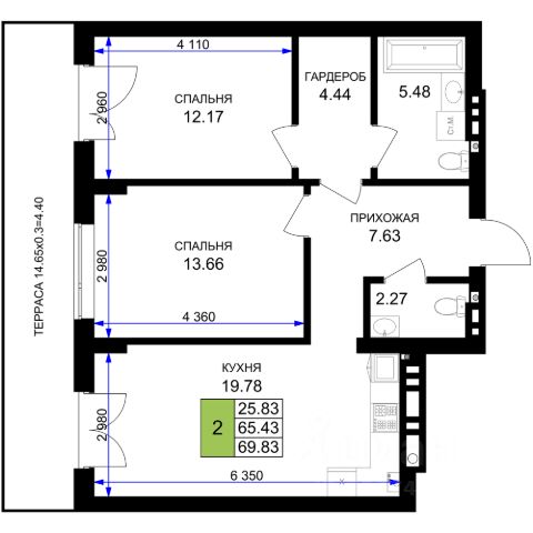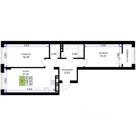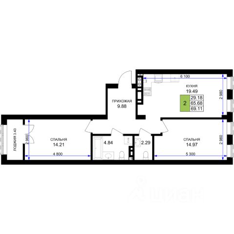 Квартира: 2 к 69,16 кв.м., 6 этаж в комплексе Включи, 5 очередь, корп.5, сдача: 1кв. , этажей: 7, адрес Гурьевск г., Героя России Катериничева ул., , Застройщик: ССК. Номер в базе: J31259L26784
