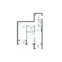 Продается квартира площадью 43.2 м² на 1 этаже 2 секции в River Park от компании ГК "ТРЕСТ". Площадь кухни 14.2 м².