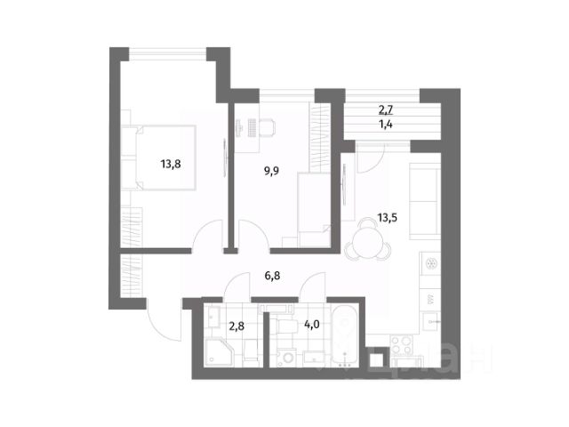 Суперская квартира с идеальной планировкой, дом 2024 года постройки Центральное отопление с индивидуальным счетчиком Квартира в качественном сером ключе, планировка и фото - соответствуют действительности Ориентир - Краковский бульвар Калининградское шоссе, Гагарина