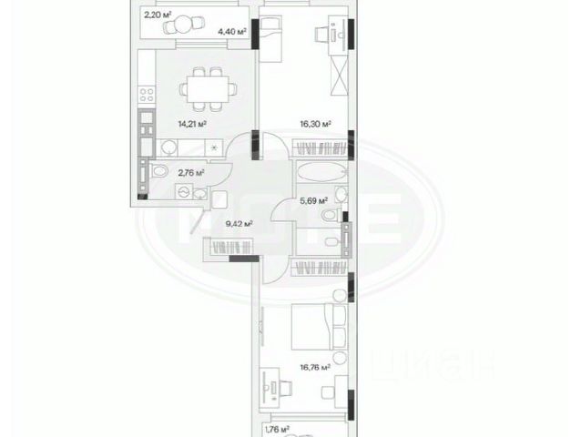 Квартира: 2 к 65,36 кв.м., 4 этаж в комплексе Аэро, 1 очередь, корп.A, сдача: 3кв. , этажей: 7, адрес Малое Исаково п., Первая ул., д. 1 корп 1, Застройщик: ГК Расцвет.