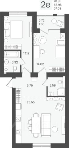 - Уютная спальня 9 м² с отдельной гардеробной 1,8 м² — всё под рукой, без лишних вещей.