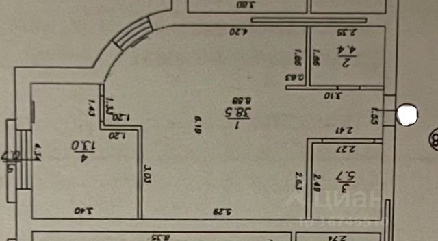 квартира - полумансарда с индивидуальной планировкой на третьем этаже площадью 59.5 м2: