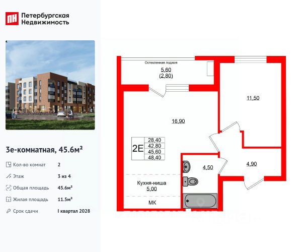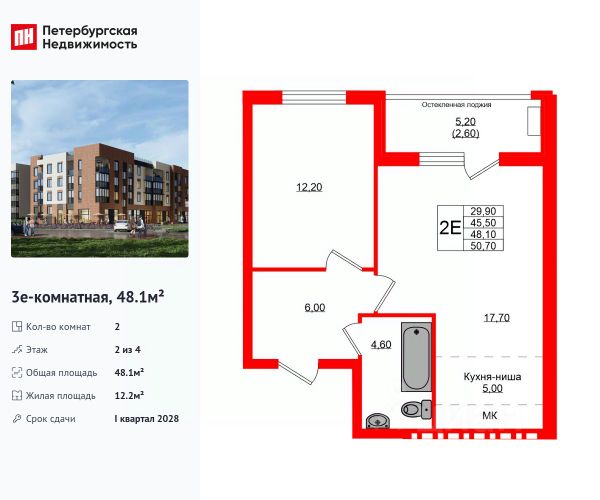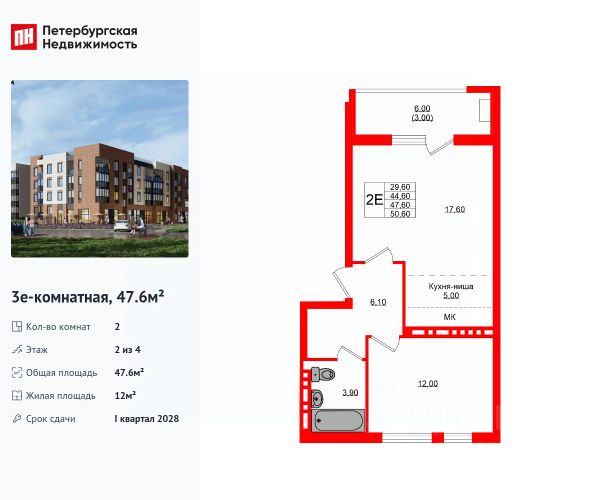 Продается уютная 2-комнатная квартира от застройщика в жилом комплексе "Кроны и Волны" в Зеленоградск. Удобная, классическая, функциональная европланировка, большая кухня-гостиная 22.6 м², вместительная прихожая 6.1 м². Общая площадь квартиры - 47.6 м², жилая 12 м², высота потолка 2.7 м. Квартира продается с отделкой "Серый ключ КиВ". Что особенного в ЖК "Кроны и Волны"? • Современный малоэтажный жилой комплекс • Дизайнерские детские площадки, зоны для спорта и активного отдыха, велодорожки • Помещения для колясок и велосипедов в каждой парадной • Неповторимые лесные пейзажи в непосредственной близости к побережью Балтийского моря • Концепция "Двор без машин"