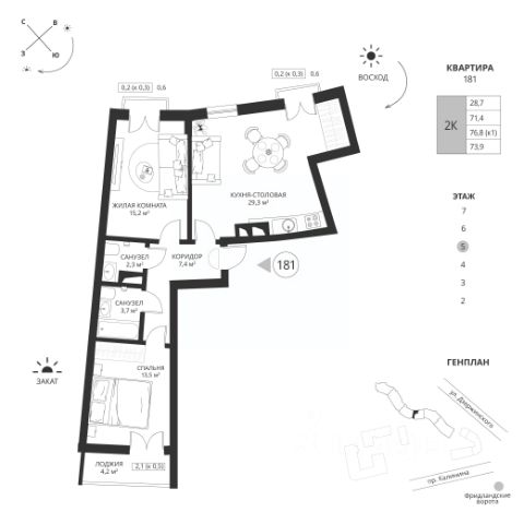 Прямая продажа от застройщика! ЖК "Вдохновение" - вторая очередь ЭКОквартала "Русская Европа". Срок сдачи IV квартал 2026 года. Впечатляющие квартиры с отделкой WHITE BOX, потолками 3,15 м и панорамным WOW-видом на парк. Уникальные преимущества: - Большой выбор современных планировок; - Собственная терраса и сауна в каждой квартире; - Автономное отопление и энергоэффективные системы; - Закрытая охраняемая территория с системой Smart-доступа; - Общественные пространства и гриль-зоны на крыше каждого подъезда; - Ландшафтный парк во дворе с уютными аллеями с зонами отдыха, детскими и спортивными площадками; - Подземный паркинг и кладовые в каждом доме. Расположение комплекса: ЖК "Вдохновение" находится в престижном Ленинградском районе Калининграда в15 минутах от центра города. Удобный выезд на побережье Балтийского моря (25 минут) и в аэропорт (20 минут). Рядом остановка общественного транспорта. О проекте: ЭКОквартал "Русская Европа" ежегодно признается одним из лучших жилых комплексов России и отмечен знаком "Жилой комплекс 1 г. Калининград (рейтинг ЕРЗ.РФ). Это безупречное решение для тех, кто не боится лидерства и высоты, не ищет простых путей, держит высокую планку во всем, не останавливается на достигнутом и живет в ритме мегаполиса. Полная социальная инфраструктура на территории комплекса: - Новая школа; - Детский сад; - Детская поликлиника. Горящие предложения: - Рассрочка 0% на период строительства; - Семейная ипотека 3,5% на весь срок; - Ипотека для IT-специалистов 4.2% . Больше подробностей о квартирах жилого комплекса "Вдохновение" и уникальное предложение для вашего бюджета - по телефону отдела продаж! Звоните! Продается 2-комнатная квартира с двумя санузлами в Калининграде.