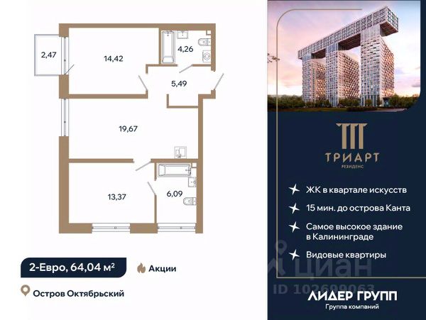 Продается 2 комнатная квартира 611 в ЖК комфорт класса "Огни Калининграда" в самом сердце Калининграда, панорамные виды! "Огни Калининграда" — это не просто жилой комплекс, а настоящий вертикальный город с уникальной архитектурой. Расположенный на улице Гайдара, 90, он стал символом современного урбанизма. Здесь вас ждут просторные квартиры с панорамными окнами, открывающими потрясающие виды на городские пейзажи и закаты. Выше облаков — ближе к мечте! Свяжитесь с нами прямо сейчас, чтобы получить эксклюзивное предложение по покупке квартиры. Мы обсудим все детали и предложим Вам самые выгодные условия! ПРЕИМУЩЕСТВА ЖИЛОГО КОМПЛЕКСА: ИДЕАЛЬНОЕ расположение: Пересечение главных улиц, вся инфраструктура под рукой. Район Сельма один из самых востребованных микрорайонов города! Рядом ВСЕ необходимон для комфотной жизни: Школы, детские сады, магазины, аптеки, кафе! жд станция в шаговой доступности. 30 минут до моря! ПАНОРАМНЫЙ ВИД на город: Наслаждайтесь величественными видами из своих окон каждое утро! Комфорт и безопасность: Подземный паркинг, автономное отопление, развитая территория. Современное качество: Надежные коммуникации, продуманные планировки, внимание к деталям. Почему ЖК "Огни Калининграда" ваш идеальный выбор? 1. ЦЕНТР + ВИД: Уникальное сочетание лучшей локации и панорамных видов. 2. ЖК КОМФОРТ-КЛАССА: Современный, безопасный, комфортный комплекс со всей инфраструктурой. 3. ВИД ОТДЕЛКИ: Серый ключ 4. ИДЕАЛЬНО ДЛЯ СЕМЬИ: Рядом школы, сады, парки все для спокойной жизни с детьми. 5. УДОБСТВО И ЭКОНОМИЯ: Автономное отопление, паркинг ваш комфорт и контроль расходов. 6. ОТЛИЧНАЯ ИНВЕСТИЦИЯ: Престижный ЖК в отличной локации стабильный рост стоимости. ВАШИ ВЫГОДЫ: 7. РАССРОЧКА 0% БЕЗ ПЕРЕПЛАТ: - Беспроцентная рассрочка от застройщика до марта 2028 года! Индивидуальный график платежей позволит спланировать бюджет без переплат. . 100% ЗАЩИТА: Средства дольщиков застрахованы (Фонд защиты прав граждан риски исключены). 8. НАДЕЖНЫЙ ЗАСТРОЙЩИК: Более 20 лет на рынке. Не упустите шанс! Квартиры в ЖКОгни Калининграда с таким расположением и видом уходят быстро! ЗВОНИТЕ ПРЯМО СЕЙЧАС