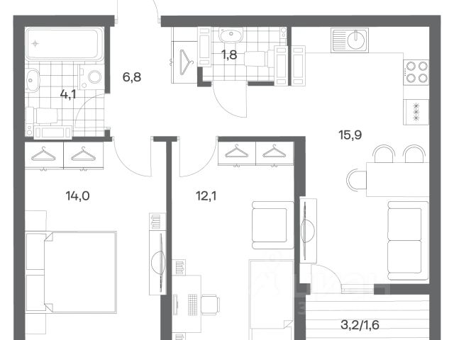 Продается квартира площадью 55.1 м² на 16 этаже 1 секции в Гагарина 30 от компании ГК "ТРЕСТ". Площадь кухни 15.8 м². Жилой комплекс комфорт-класса "Гагарина 30" расположен в Ленинградском районе Калининграда на улице Юрия Гагарина. Жилой комплекс включает в себя три корпуса высотой 9-18 этажей. Срок сдачи намечен на 1 квартал 2028 года. Жилой комплекс расположен в географическом центре города Калининград. Он знаменит Музеем янтаря, Королевскими воротами, Верхним и Нижним прудами, районами Альтштадт и Лебенихт. Из жилого квартала за 10 минут можно добраться до парков Тихий и Кальтхёфер. В жилом комплексе 457 квартир, из них 55% двух- и трёхкомнатные. Доступны варианты с просторными кухнями-гостиными, мастер-спальнями и кладовыми. На первых этажах расположены квартиры с приватными открытыми террасами. На верхних этажах лоджии с холодным остеклением, панорамными и увеличенными окнами. Высота потолков первого и последнего этажей - 3 м (кроме первого корпуса), остальных 2,72 м. Интерьеры МОП-ов выполнены в минималистичном стиле с контрастными, дополняющими друг друга материалами. Благодаря использованию светлых оттенков, природных текстур и декоративного освещения, пространство имеет большое количество света. В лифт-холле предусмотрена зона ожидания с мягкой мебелью. Почтовые ящики вынесены в тамбур, а рядом со стойкой домофона предусмотрена консоль для сумок. Дизайн-проект разработан студией Right design. Для удобства автомобилистов созданы подземные паркинги: на 125 машиномест и кладовые помещения. В паркинг можно будет спуститься на лифте комфортно людям, безопасно автомобилям!