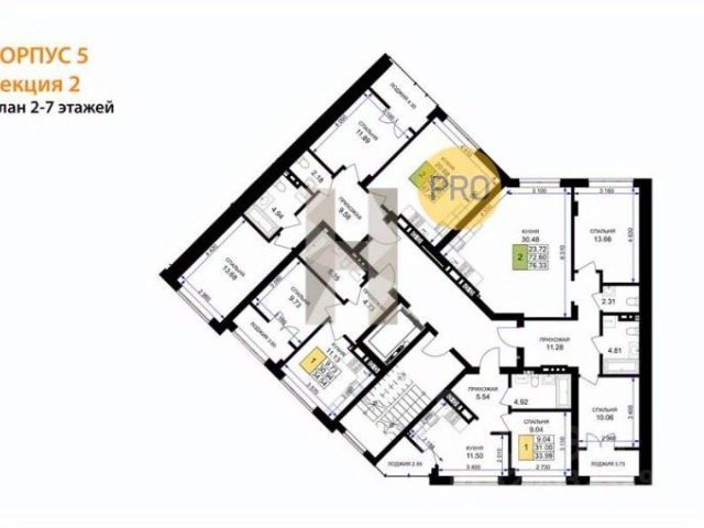 Квартира: 2 к 76,33 кв.м., 4 этаж в комплексе Включи, 5 очередь, корп.5, сдача: 1кв. , этажей: 7, адрес Гурьевск г., Героя России Катериничева ул., , Застройщик: ССК. Номер в базе: J31259L26734