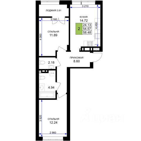 Квартира: 2 к 58,68 кв.м., 4 этаж в комплексе Включи, 5 очередь, корп.5, сдача: 1кв. , этажей: 7, адрес Гурьевск г., Героя России Катериничева ул., , Застройщик: ССК. Номер в базе: J31259L26800