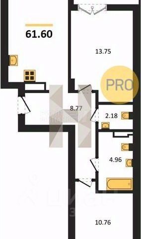 Продается квартира площадью 60.1 м² на 4 этаже 3 секции в River Park от компании ГК "ТРЕСТ". Площадь кухни 11.6 м².