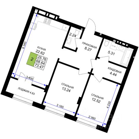 • ✅ Объект наибольшей площади: 74,8 м²