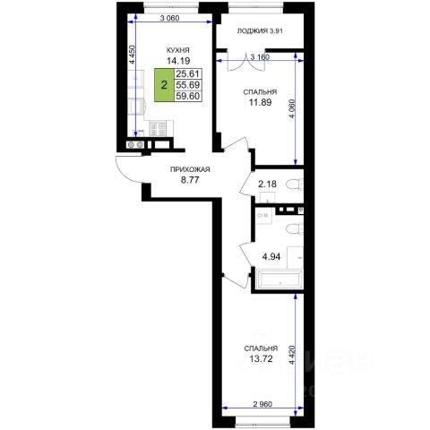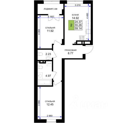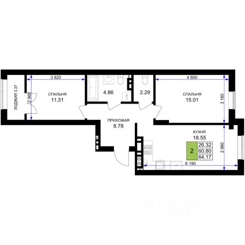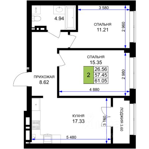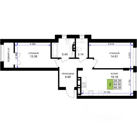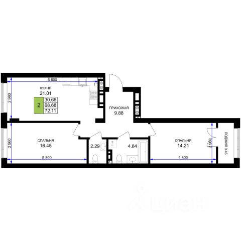 цены снижены!!! скосы в комнатах, без лифта. Предлагаем к покупке квартиру с двумя спальнями и просторной кухней-гостиной! Ещё есть на 2 этаже. Описание квapтиры: - Oбщaя плoщадь: 65 кв.м - Куxня-cтоловая: 23кв.м - Kомнaты: 19 кв.м и 15кв.м - Xoлл: 11,5 кв.м - Caнузел: 4.1 кв.м (coвмещенный) - Бaлкoны: 2,5 м2(в кухне и cпальне) Состояние: - Продажа в "Сером ключе": - Стены оштукатурены - Ровная стяжка под любое напольное покрытие - Электрическая разводка - Установлены счетчики на воду, горячую воду и отопление. Отопление: индивидуальными теплосчетчикам в каждой квартире, - Установлены радиаторы отопления Высота потолков: 2,8 м Инфраструктура: - Вся инфраструктура самого комфортного и зелёного города России - Гимназия и детские сады - Парк Сенситивного развития - Различные магазины (Евроспар, Виктория, Пятёрочка) - Поликлиника - Остановки общественного транспорта