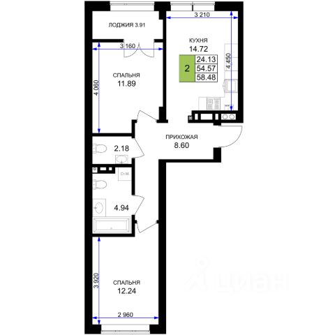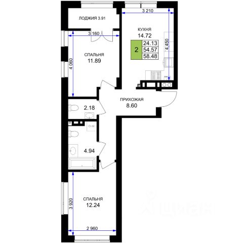 Продаётся 2-комнатная квартира в строящемся доме (Дом 8 (2 очередь)), срок сдачи: III-кв. 2027, общей площадью 58.48 кв.м., на 5 этаже. Новый жилой комплекс "Включи" от застройщика "СпецСтройКубань" расположен в г. Гурьевск в районе Гурьевского шоссе.