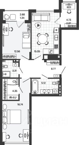 Продается просторная двухкомнатная квартира. Общая площадь квартиры 65,4 кв. м, продуманная планировка, которая максимально эффективно позволит использовать пространство помещений и создать любой интерьер: просторный холл, кухня-столовая 13,81 кв. м с выходом на лоджию, спальни 14,48 с выходом на французский балкон и 13,81 кв. м., гостевой санузел и ванная комната. Высота потолков 2,7 метра. Автономное отопление, что обеспечит низкие коммунальные платежи. Предчистовая отделка.