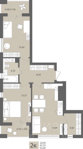 Продаётся 2-комнатная квартира в строящемся доме (Дом 3), срок сдачи: IV-кв. 2026, общей площадью 69.67 кв.м., на 5 этаже. Жилой комплекс "Клевер" в городе курорте Пионерский. Квартиры подходят под сельскую и семейную ипотеку! Срок сдачи ЖК "Клевер" - 4 кв. 2025 года. Морской пляж в 900 метрах от Жилого комплекса, развитая инфраструктура(остановки общественного транспорта, аптеки, магаины, кафе). - продуманные планировки - отличное расположение - увеличенная площадь остекления - кладовые помещения - современные бесшумные лифты - отделка подъездов по индивидуальному дизайн-проекту - вход в подъезд с уровня земли (без ступеней и пандуса) - умные домофоны - видеонаблюдение на всей территории комплекса - места стоянки колясок и велосипедов - двухуровневые квартиры - озеленение и ланшафтный дизайн - возможность установки кондиционеров - архитектурная подсветка фасадов Купить 2-комнатную квартиру на 5 этаже в Пионерском.
