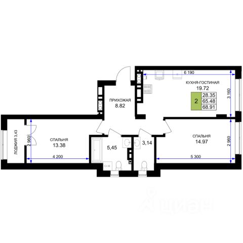 Предлагается к продаже просторная 2-комнатная квартира общей площадью 59, 5 м² по адресу ул. Строительная, 10А на 6 этаже 10-этажного дома.