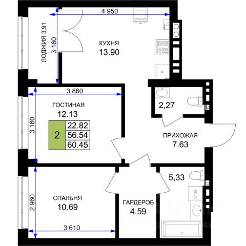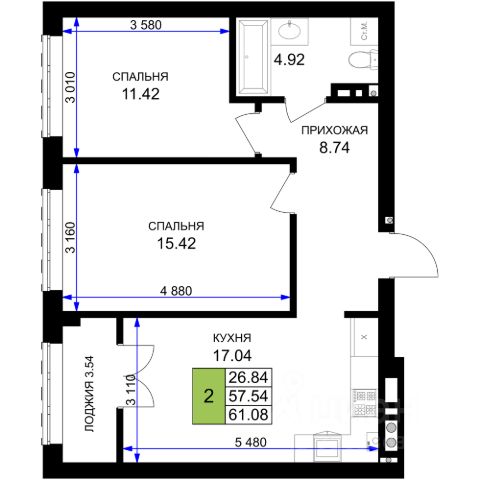 Двухкомнатная квартира — это продуманное пространство для комфортной жизни всей семьи. Две изолированные комнаты обеспечивают приватность и гибкость в зонировании: здесь легко разместить спальню, детскую, кабинет или гостиную — в зависимости от ваших потребностей. Просторная кухня вмещает полноценную обеденную зону и дополняется встроенной кладовой, где удобно хранить продукты, бытовую технику или кухонную утварь, сохраняя порядок в основной зоне. Лоджия добавляет функциональную площадь — для хранения, сушки белья или создания уютного уголка отдыха.