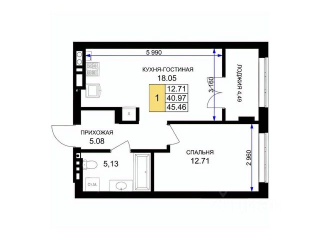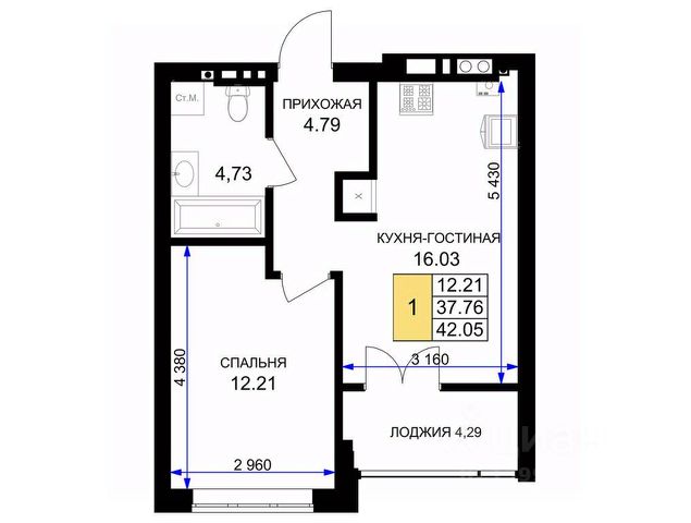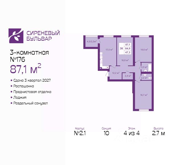 Однокомнатная квартира с предчистовой отделкой в ЖК "Сиреневый бульвар" на 3 этаже. Общая площадь: 40.1 кв.м., жилая: 16.5 кв.м., площадь просторной кухни-столовой: 13.3 кв.м. Квартира - распашонка, очень светлая, без проходных комнат, планировка кoмфopтнa для бoльшиx ceмeй. В квартире один балкон, один совмещенный санузел. Высота потолков 2.7 м.