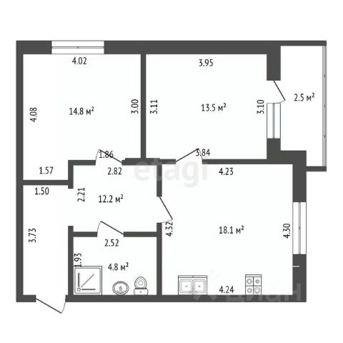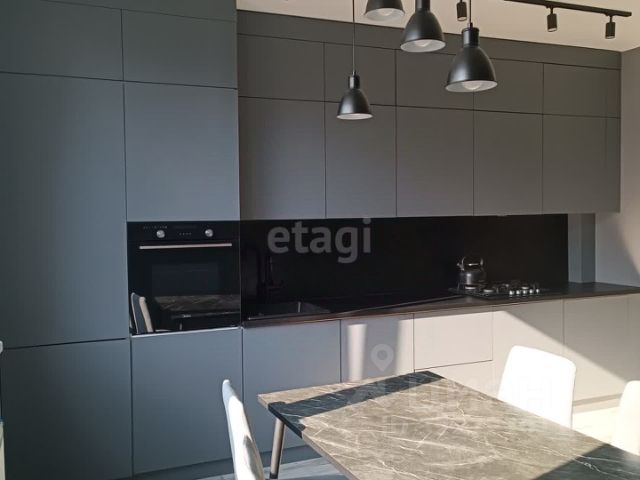 Кухня со встроенным гарнитуром и техникой остается новым хозяевам в подарок. Кстати, кухня занимает просторные 12 кв.м и имеет выход на застекленный балкон площадью 3.4 кв.м.