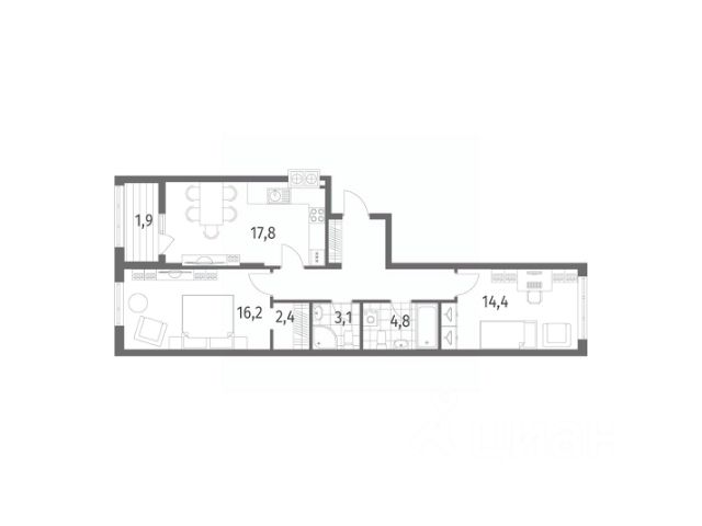Продается квартира площадью 57.9 м² на 4 этаже 2 секции в Дом на Красной от компании ГК "ТРЕСТ". Площадь кухни 17.8 м². Жилой комплекс комфорт-класса "Дом на Красной" расположен в Центральном районе Калининграда на пересечении улиц Красная и Псковская. Жилой комплекс включает в себя два дома высотой 8 этажей. Срок сдачи намечен на 4 квартал 2026 года. Жилой комплекс "Дом на Красной" имеет среднюю комфортную этажность. Благодаря геометрическим формам, заложенным в архитектурный облик зданий, их конфигурация образует почти закрытую дворовую территорию. Фасад домов выполнен из комбинированных материалов (декоративная штукатурка и плитка под кирпич) в динамичном стиле с выступающими и утопленными частями и панорамными окнами. Архитектуру жилого комплекса подчеркивает декоративная подсветка фасада. В каждом подъезде созданы помещения для хранения колясок, велосипедов и спортинвентаря, которыми могут пользоваться все жильцы. Планировочные решения предусматривают квартиры с просторными кухнями-гостиными, мастер-спальнями и гардеробными. В квартирах, которые передаются покупателям без отделки ("Серый ключ"), предусмотрены открытые террасы с видом на Школьное озеро или красивый внутренний двор, панорамные окна, лоджии с холодным остеклением, потолки высотой 2,72 м. Для удобства автомобилистов созданы подземные паркинги: на 136 машиномест и кладовые помещения. В паркинг можно будет спуститься на лифте комфортно людям, безопасно автомобилям! 2-комнатной квартиры в ипотеку в поселке Лермонтовский города Калининграда.
