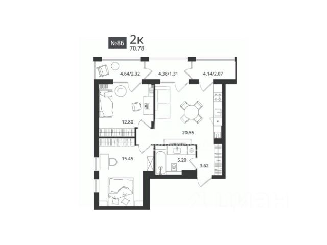 ПРОДАЖА КВАРТИРЫ ОТ ЗАСТРОЙЩИКА! Предлагается шикарная 2-комнатная квартира площадью 70,08/62,63 кв.м, расположенная на 2-ом этаже 7-ми этажного жилого комплекса бизнес-класса "Гармония". Удачное планировочное решение позволяет организовать комфортное пространство из видовой спальни и просторной кухни-гостиной площадью 19,22 кв.м. Спальные зоны деликатно отделены от гостевой, обладают лоджиями с панорамными окнами. Окна квартиры выходят на юго-восточную сторону света. О квартире: • Кухня-гостиная площадью 19,22 кв.м. • 2-е спальни площадью 11,48 и 11,51 кв.м. • Балкон и 2-е лоджии • Мастер-спальня с санузлом • Совмещенный санузел • Потолок 2,80 метра В самом сердце соснового леса, одного из крупнейших лесных массивов Светлогорска, строится новый жилой комплекс бизнес-класса - ЖК Гармония. ЖК Гармония - это жилой комплекс, состоящий из 3 секций высотой до 7 этажей, с которых будут открываться панорамные виды на лесной массив. В доме предусмотрены сквозные подъезды, соединяющие дворовое пространство и территорию вокруг. В доме также будут располагаться коммерческие помещения. Плюсы: Архитектурное решение в Скандинавском стиле: • прямые и чёткие линии, простые формы; • натуральные материалы и природные цвета; • экологичный дизайн; • отсутствие непрактичных декоративных элементов; • использование естественного света; • сквозные подъезды; • кладовые; • спортивная и детская площадки с антитравматическим покрытием, велопарковка; • 43 вида планировочных решений; • лоджия и балкон в каждой квартире, панорамное остекление; • скатная крыша, фальцевая кровля, красный керамический блок. Система "умный дом": умные квартирные счётчики, видеонаблюдение территории возле дома, парковка, лифт; видеодомофон. Местоположение и транспортная доступность: ЖК Гармония будет возведён в районе 2,4 км от моря и центра города Светлогорска. Для автомобилистов есть удобные выезды как в центр города, так и на Большую окружную в сторону Калининграда, Зеленоградска, Пионерского, аэропорта. Комплекс расположится прямо у озера Майское в окружении Светлогорского леса. Инфраструктура: На территории ЖК Гармония создаются благоустроенные дворы без доступа автомобилей, а для автомобилистов вместительный подземный паркинг на 36 машиномест. Вокруг будущего комплекса уже сложилась богатая инфраструктура района со школой, детскими садами, детской поликлиникой, детскими лагерями отдыха, физкультурно-оздоровительный комплекс с ледовым катком, бассейном, а также объектами ритейла. Варианты оплаты: Ипотека с Господдержкой, семейная ипотека, военная ипотека, рассрочка от застройщика, материнский капитал, Trade-in, онлайн сделка. Продается 2-комнатная квартира в ипотеку в Светлогорске.