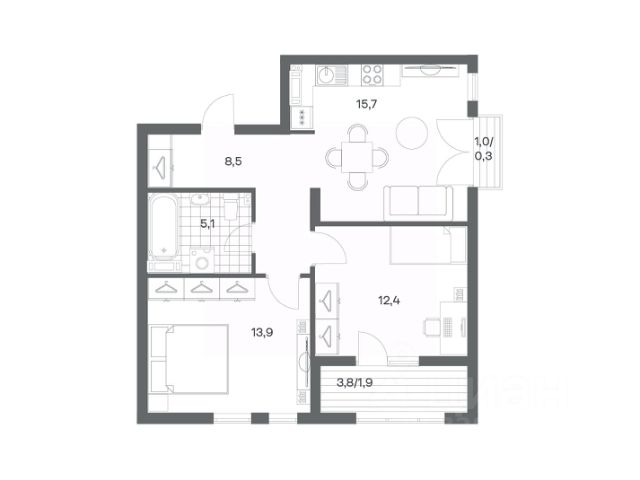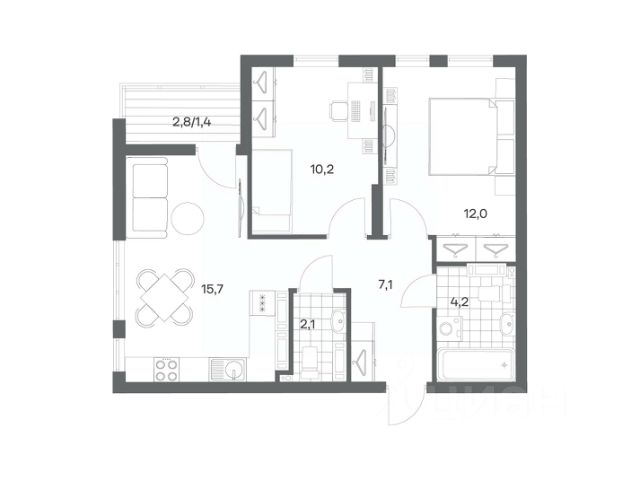 Продается квартира площадью 57.8 м² на 7 этаже 5 секции в Гагарина 30 от компании ГК "ТРЕСТ". Площадь кухни 15.7 м². Жилой комплекс комфорт-класса "Гагарина 30" расположен в Ленинградском районе Калининграда на улице Юрия Гагарина. Жилой комплекс включает в себя три корпуса высотой 9-18 этажей. Срок сдачи намечен на 1 квартал 2028 года. Жилой комплекс расположен в географическом центре города Калининград. Он знаменит Музеем янтаря, Королевскими воротами, Верхним и Нижним прудами, районами Альтштадт и Лебенихт. Из жилого квартала за 10 минут можно добраться до парков Тихий и Кальтхёфер. В жилом комплексе 457 квартир, из них 55% двух- и трёхкомнатные. Доступны варианты с просторными кухнями-гостиными, мастер-спальнями и кладовыми. На первых этажах расположены квартиры с приватными открытыми террасами. На верхних этажах лоджии с холодным остеклением, панорамными и увеличенными окнами. Высота потолков первого и последнего этажей - 3 м (кроме первого корпуса), остальных 2,72 м. Интерьеры МОП-ов выполнены в минималистичном стиле с контрастными, дополняющими друг друга материалами. Благодаря использованию светлых оттенков, природных текстур и декоративного освещения, пространство имеет большое количество света. В лифт-холле предусмотрена зона ожидания с мягкой мебелью. Почтовые ящики вынесены в тамбур, а рядом со стойкой домофона предусмотрена консоль для сумок. Дизайн-проект разработан студией Right design. Для удобства автомобилистов созданы подземные паркинги: на 125 машиномест и кладовые помещения. В паркинг можно будет спуститься на лифте комфортно людям, безопасно автомобилям!
