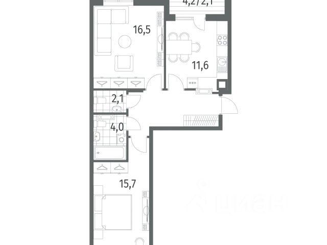 Суперская квартира с идеальной планировкой, дом 2024 года постройки Центральное отопление с индивидуальным счетчиком Квартира в качественном сером ключе, планировка и фото - соответствуют действительности Ориентир - Краковский бульвар Калининградское шоссе, Гагарина