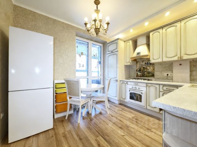 Кухня правильной формы, 12 м.кв., здесь отличный комплект встроенной мебели и бытовой техники.