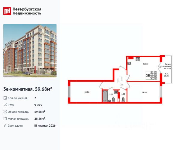ПЛАНИРОВКА: кухня 13.4 кв.м, светлые большие комнаты (15.8кв.м+15.6 кв. м), санузел совмещен (5.6 кв. м), прихожая 9.9 кв. м. Имеются все счетчики, отопление автономное, лоджия с панорамными окнами.