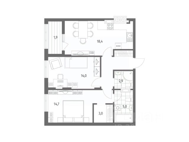 Продается квартира площадью 58.1 м² на 3 этаже 8 секции в Дом на Красной от компании ГК "ТРЕСТ". Площадь кухни 16.2 м². Жилой комплекс комфорт-класса "Дом на Красной" расположен в Центральном районе Калининграда на пересечении улиц Красная и Псковская. Жилой комплекс включает в себя два дома высотой 8 этажей. Срок сдачи намечен на 4 квартал 2026 года. Жилой комплекс "Дом на Красной" имеет среднюю комфортную этажность. Благодаря геометрическим формам, заложенным в архитектурный облик зданий, их конфигурация образует почти закрытую дворовую территорию. Фасад домов выполнен из комбинированных материалов (декоративная штукатурка и плитка под кирпич) в динамичном стиле с выступающими и утопленными частями и панорамными окнами. Архитектуру жилого комплекса подчеркивает декоративная подсветка фасада. В каждом подъезде созданы помещения для хранения колясок, велосипедов и спортинвентаря, которыми могут пользоваться все жильцы. Планировочные решения предусматривают квартиры с просторными кухнями-гостиными, мастер-спальнями и гардеробными. В квартирах, которые передаются покупателям без отделки ("Серый ключ"), предусмотрены открытые террасы с видом на Школьное озеро или красивый внутренний двор, панорамные окна, лоджии с холодным остеклением, потолки высотой 2,72 м. Для удобства автомобилистов созданы подземные паркинги: на 136 машиномест и кладовые помещения. В паркинг можно будет спуститься на лифте комфортно людям, безопасно автомобилям! Купить 2-комнатную квартиру в поселке Лермонтовский города Калининграда.